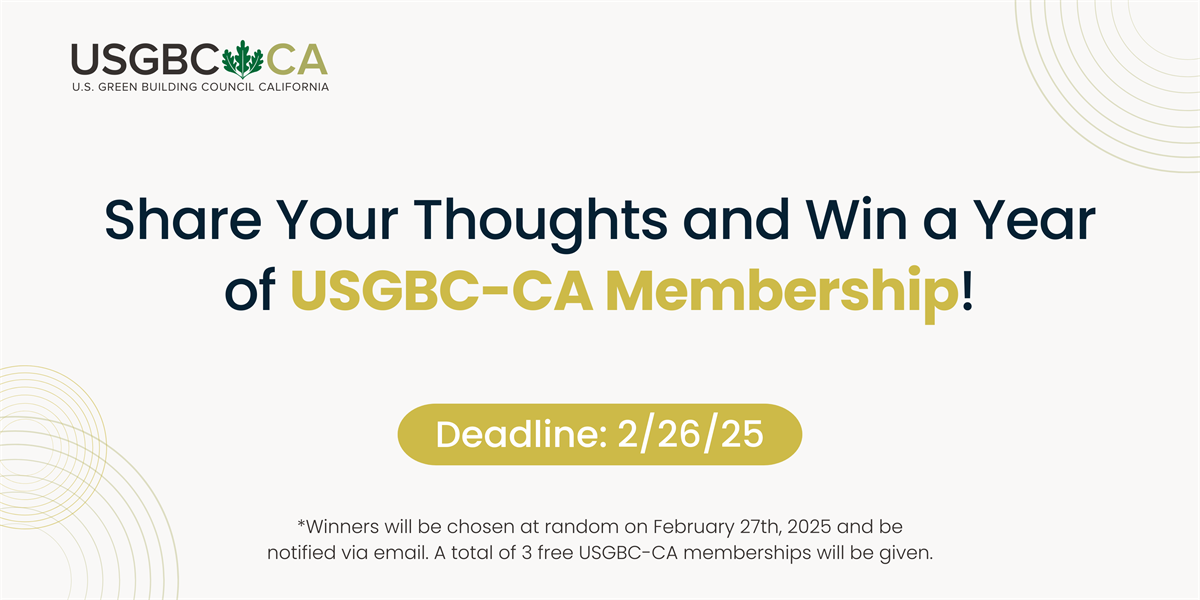 *Winners will be chosen at random on February 27th, 2025 and be notified via email. A total of 3 free USGBC-CA memberships will be given.