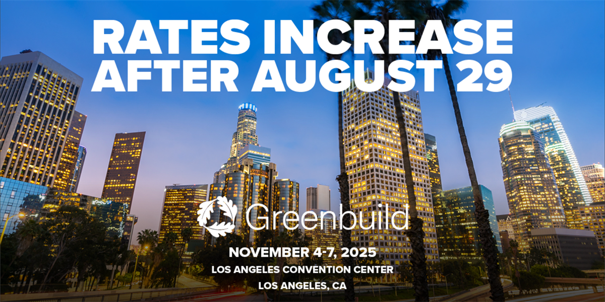 Greenbuild Early Bird Registration ends on 8/29! For more information and to register, visit the Greenbuild website!